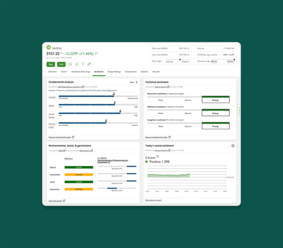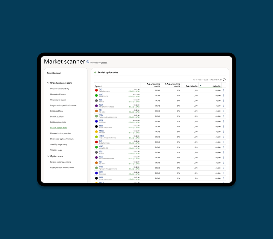 Fine-tune trading strategies with research across stocks, options, crypto, and mutual funds. Use screeners to spark new trading ideas and make confident decisions backed by data, professional analysis, and research reports.