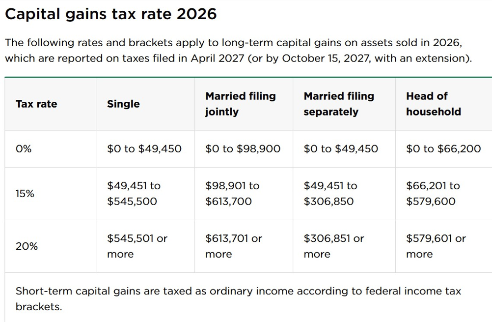 When you sell shares in ETFs, you’ll have a capital gain or loss, depending on your basis in the shares. This is no different than the tax treatment that applies to the sale of shares in individual stocks or in mutual funds. See chart below for 2025 rates.