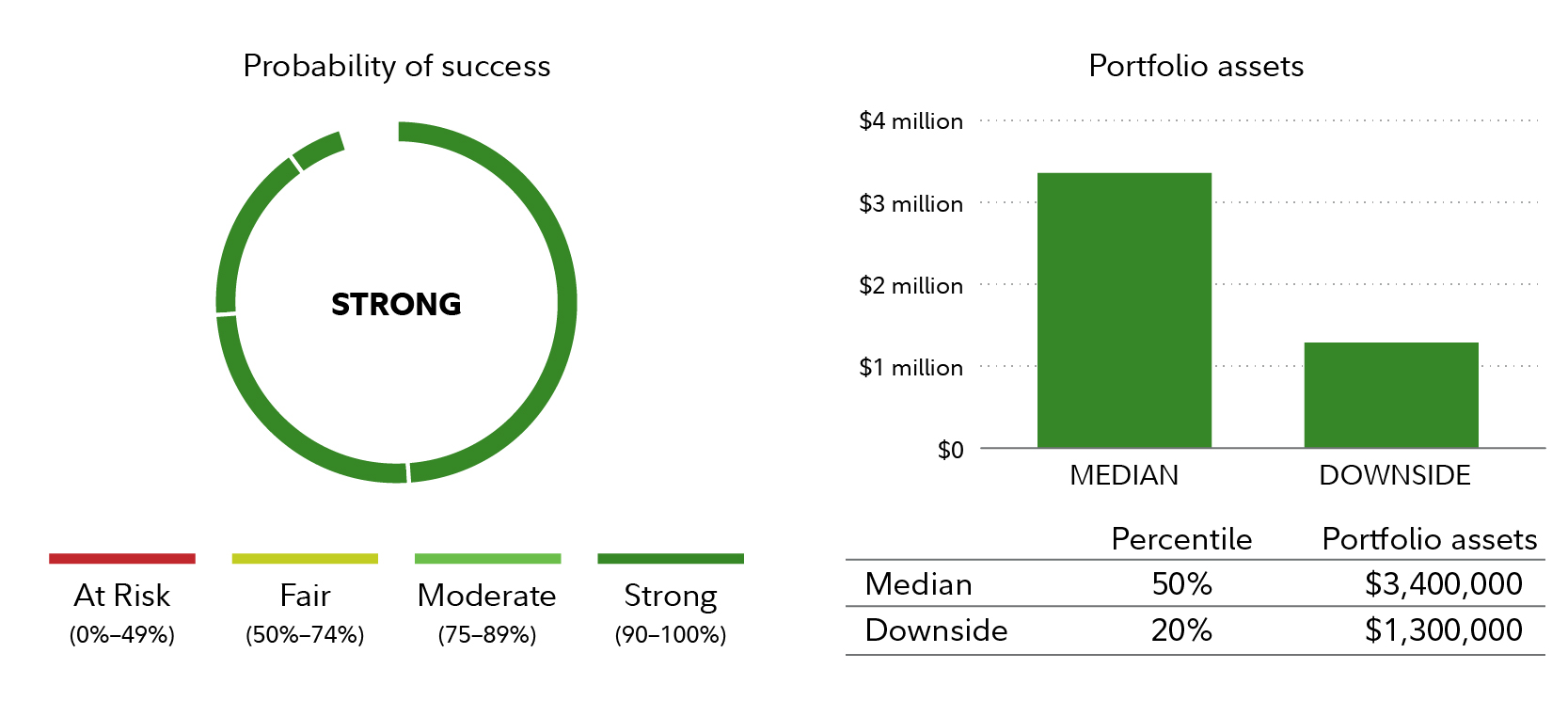| Probability of success | Balance at age 96 in median market scenario | Balance at 96 in down market scenario | |