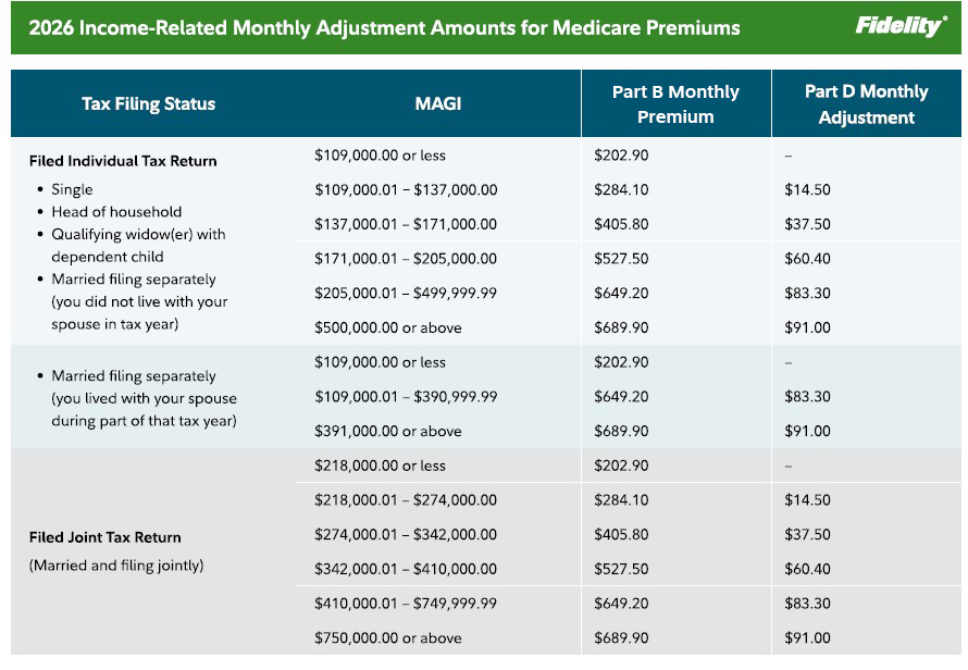 The following chart shows how Medicare calculates IRMAA based on income level1: