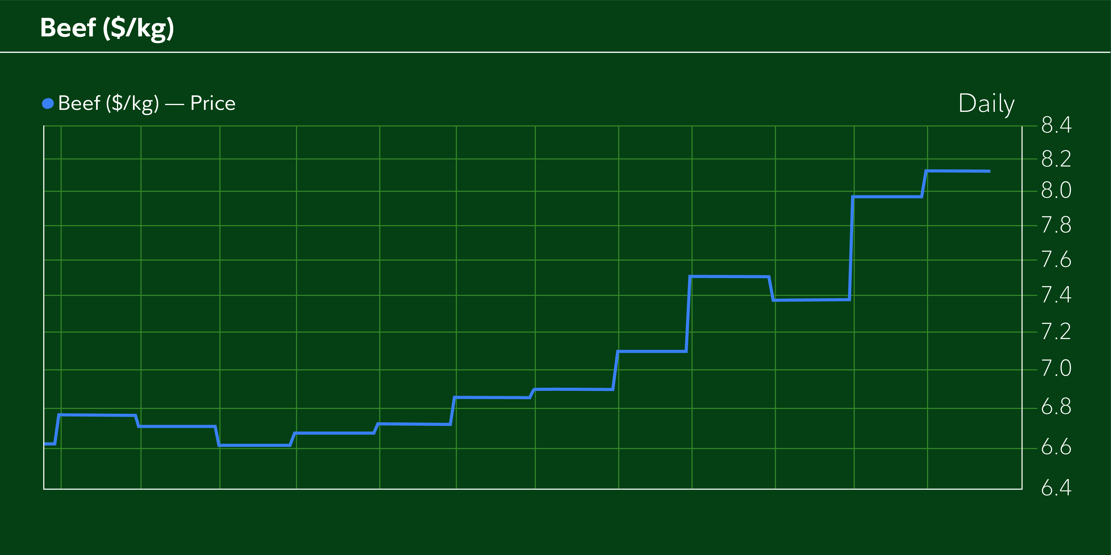 And beef prices continue to hover near all-time highs as global demand outstrips supply. The Hightower Report’s March 23 daily livestock commentary (which you can find on Fidelity.com, login required) noted that beef production last week was 455.3 million pounds, down from 484.6 million pounds a year ago. Smaller herd sizes (2025 saw the smallest national herd size since 1951), higher feed prices (the American Farm Bureau Federation reports that input costs are up more than 50% for American ranchers over the past 5 years), and growing global demand have led to sticker shock for many grocery shoppers.