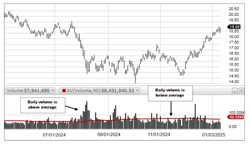 - Compare the Average Volume for the specified period to determine if volume is above or below average.