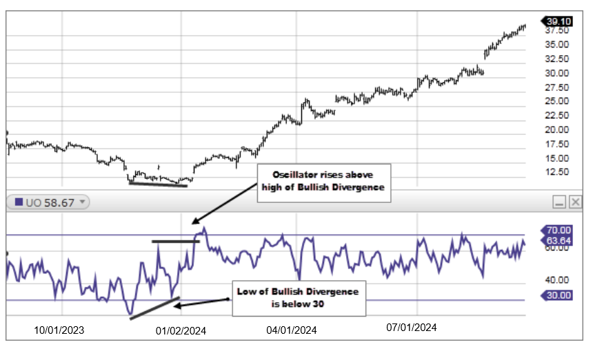 - The Oscillator then rises above the highest point reached during the span of the bullish divergence.