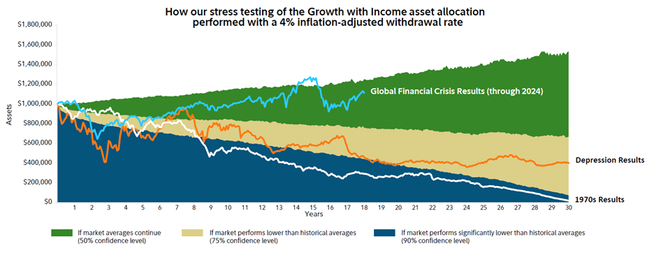 “Our research shows that the biggest risk to long-term sustainability may not be a short-term market event like the Great Depression or the Great Recession, but rather the type of high inflationary environment that we saw in the 1970s and ‘80s,” says Bullard.