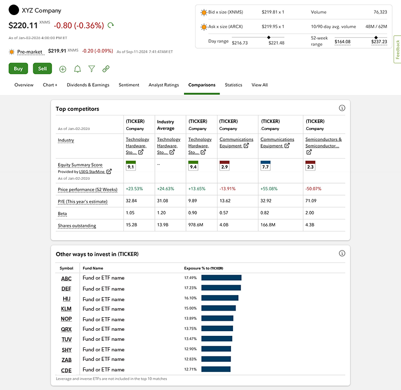 If you'd rather not read through individual analyst research reports on a company, you can find a stock's Equity Summary Score (ESS) by LSEG StarMine from Refinitiv on Fidelity.com. This is a consolidated view of the ratings from a number of independent research providers, all in a single score. It allows you to quickly get a sense of how analysts view a stock at a given point in time. You can find a stock’s ESS on its snapshot page below the chart (a Fidelity.com login is required).